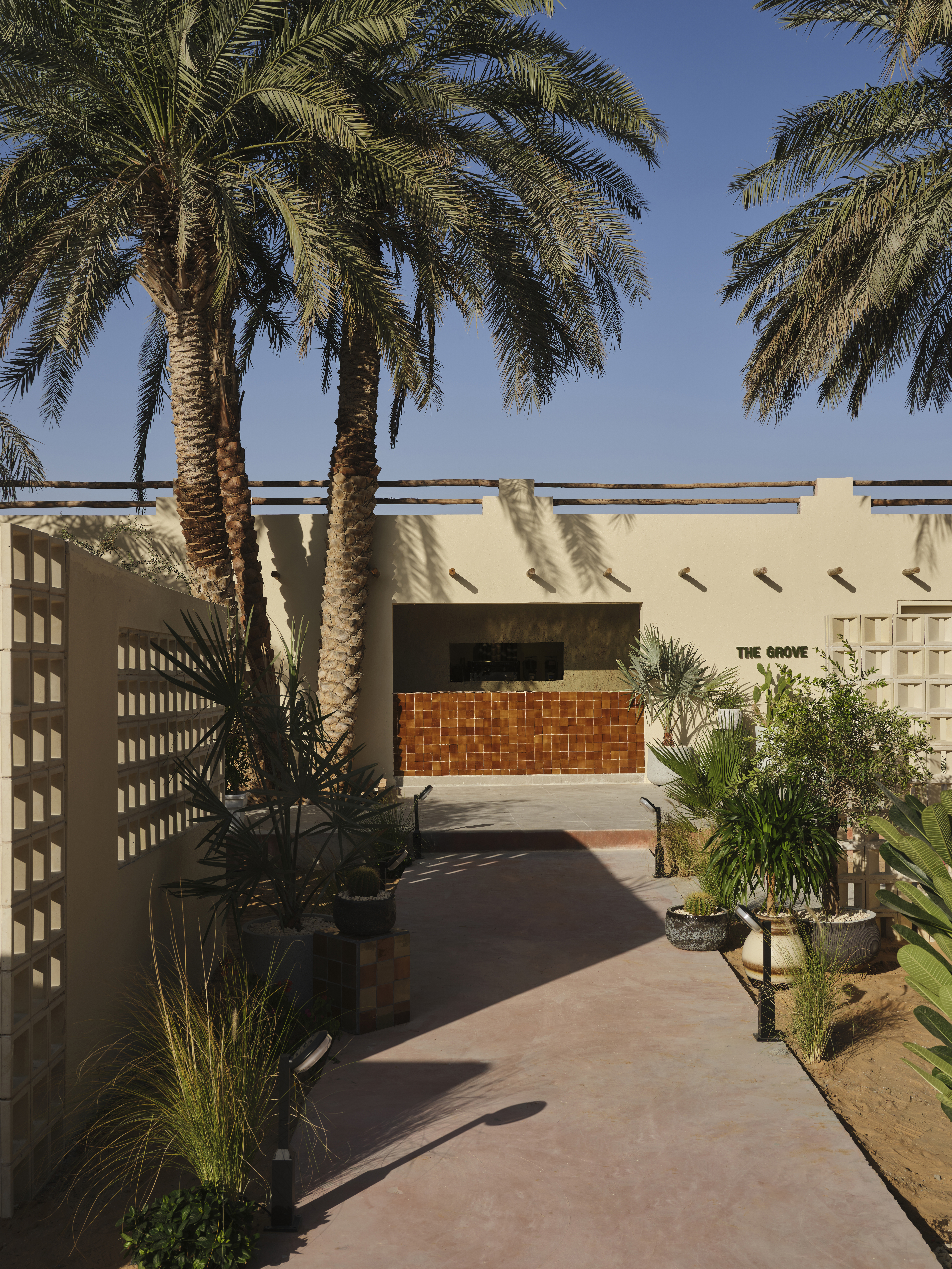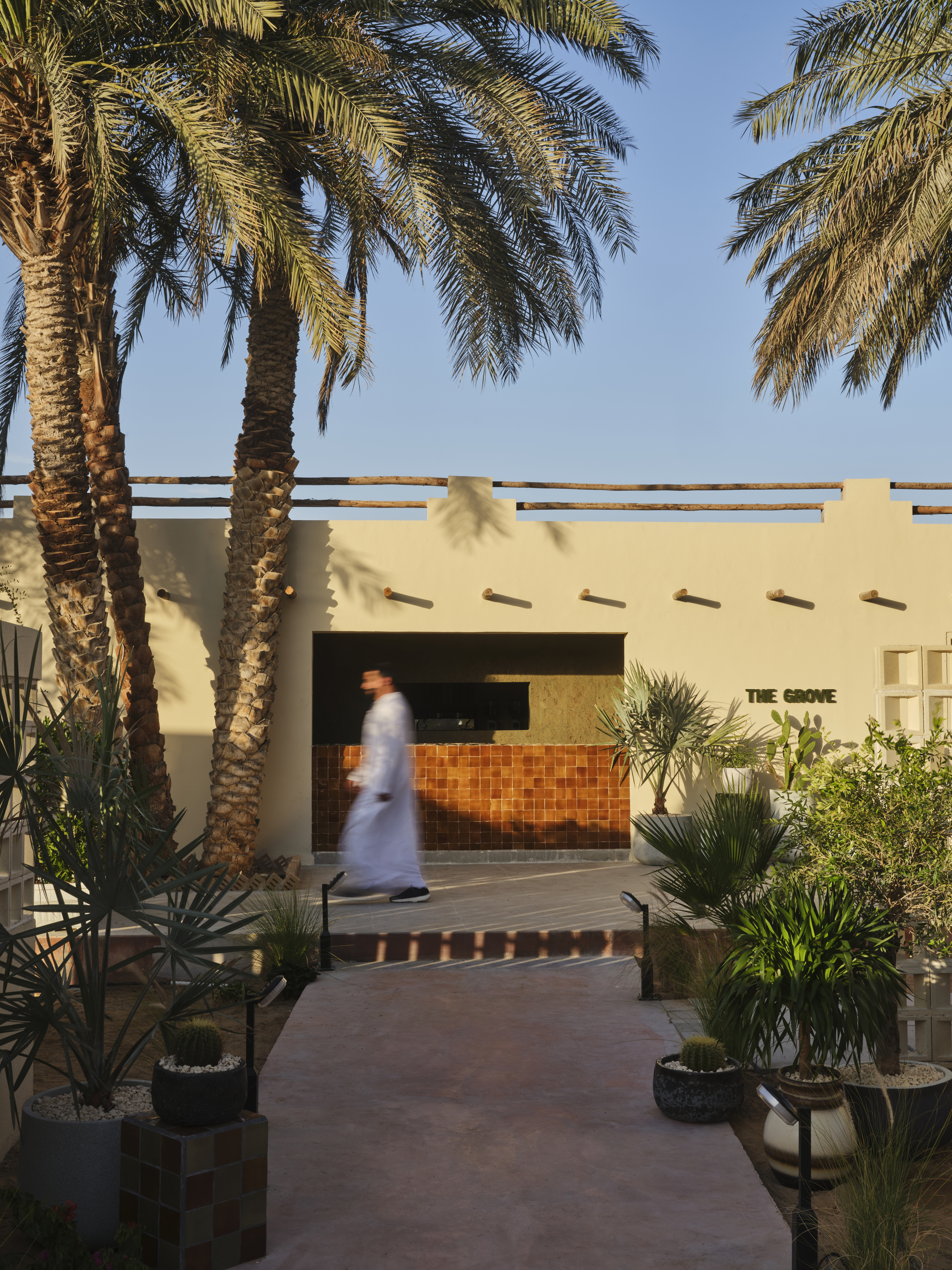 The Grove is a newly opened coffee house on the desert outskirts of Al Ain. Conceived as a quiet refuge for locals and visitors, the space channels the region’s landscape and muted colour palette to create an atmosphere of calm, grounded hospitality.